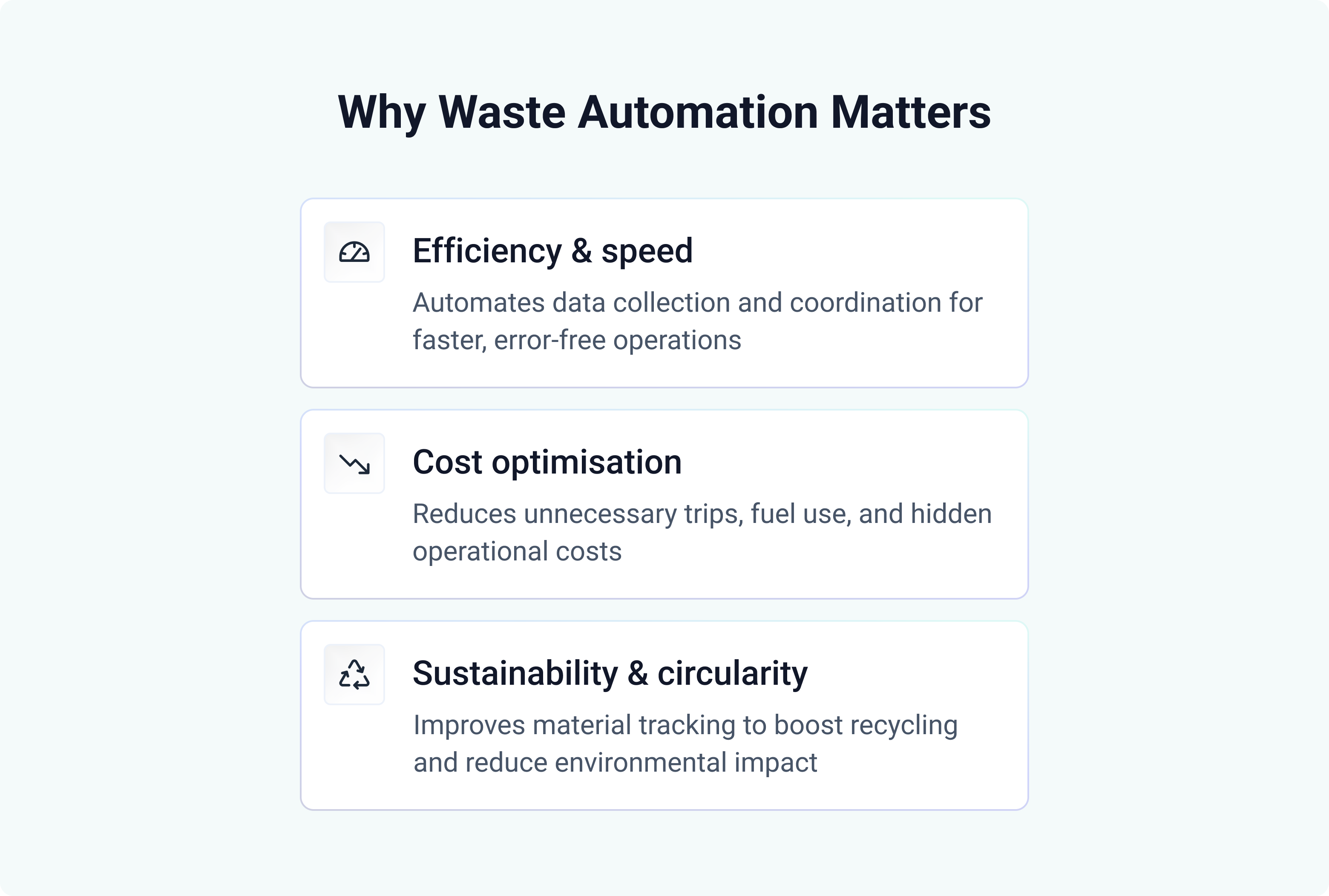 - Faster insight – real-time visibility into waste volumes, materials, and costs.