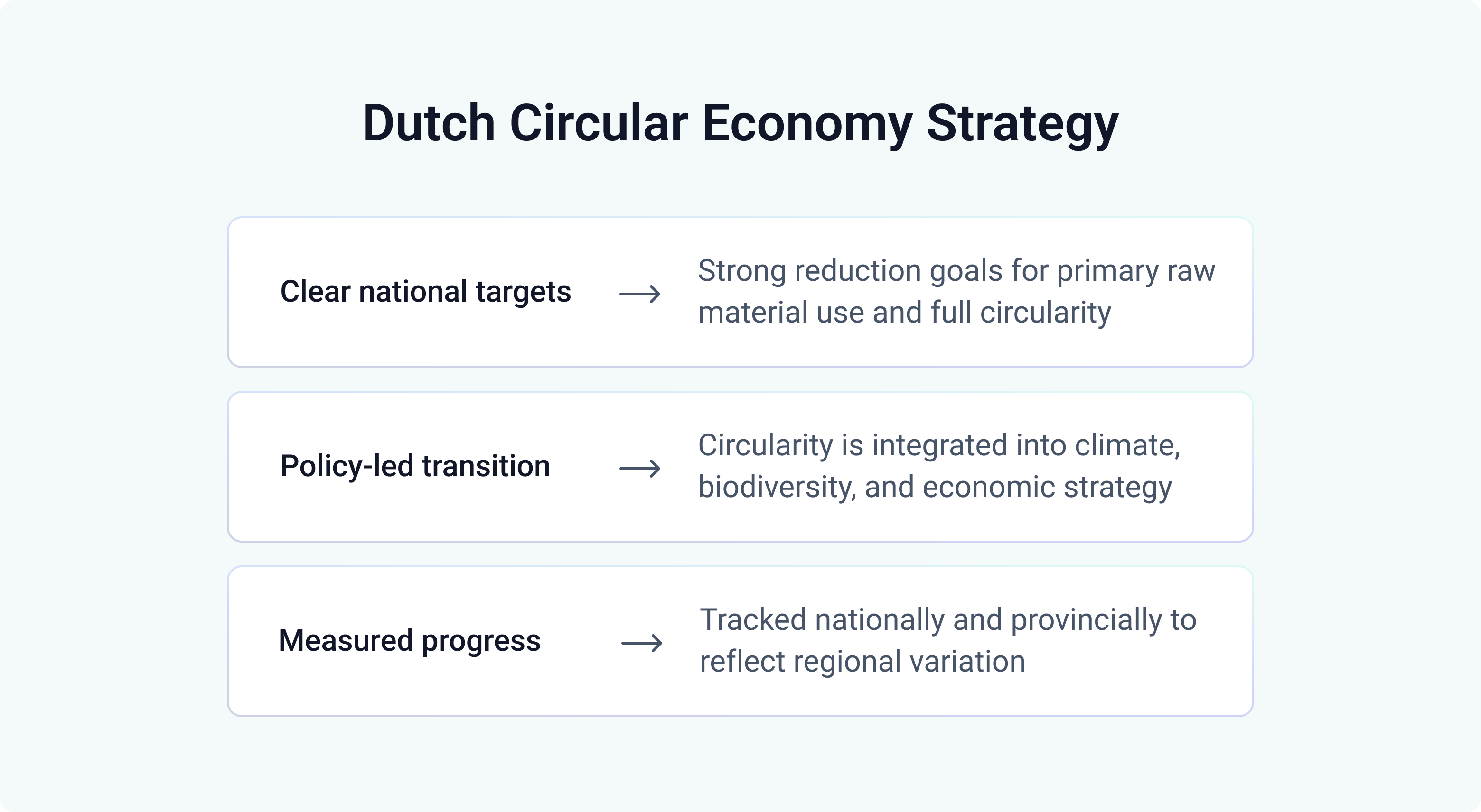 The Dutch model relies on a combination of complementary indicators that together describe how circular the economy actually is.