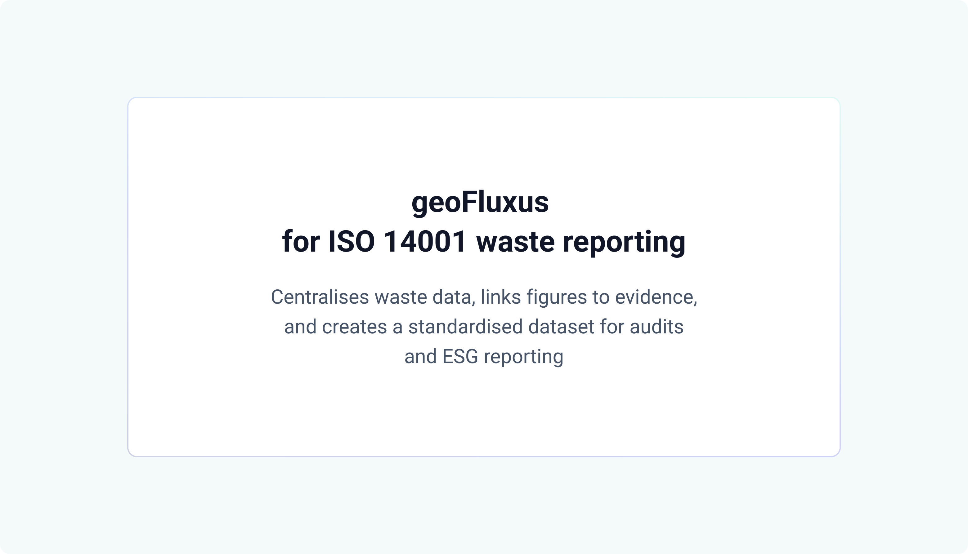geoFluxus supports this approach by acting as a central waste data database: structuring waste documents into a consistent dataset, linking every figure to evidence, and producing exportable outputs for ISO oversight and sustainability disclosure from the same source.