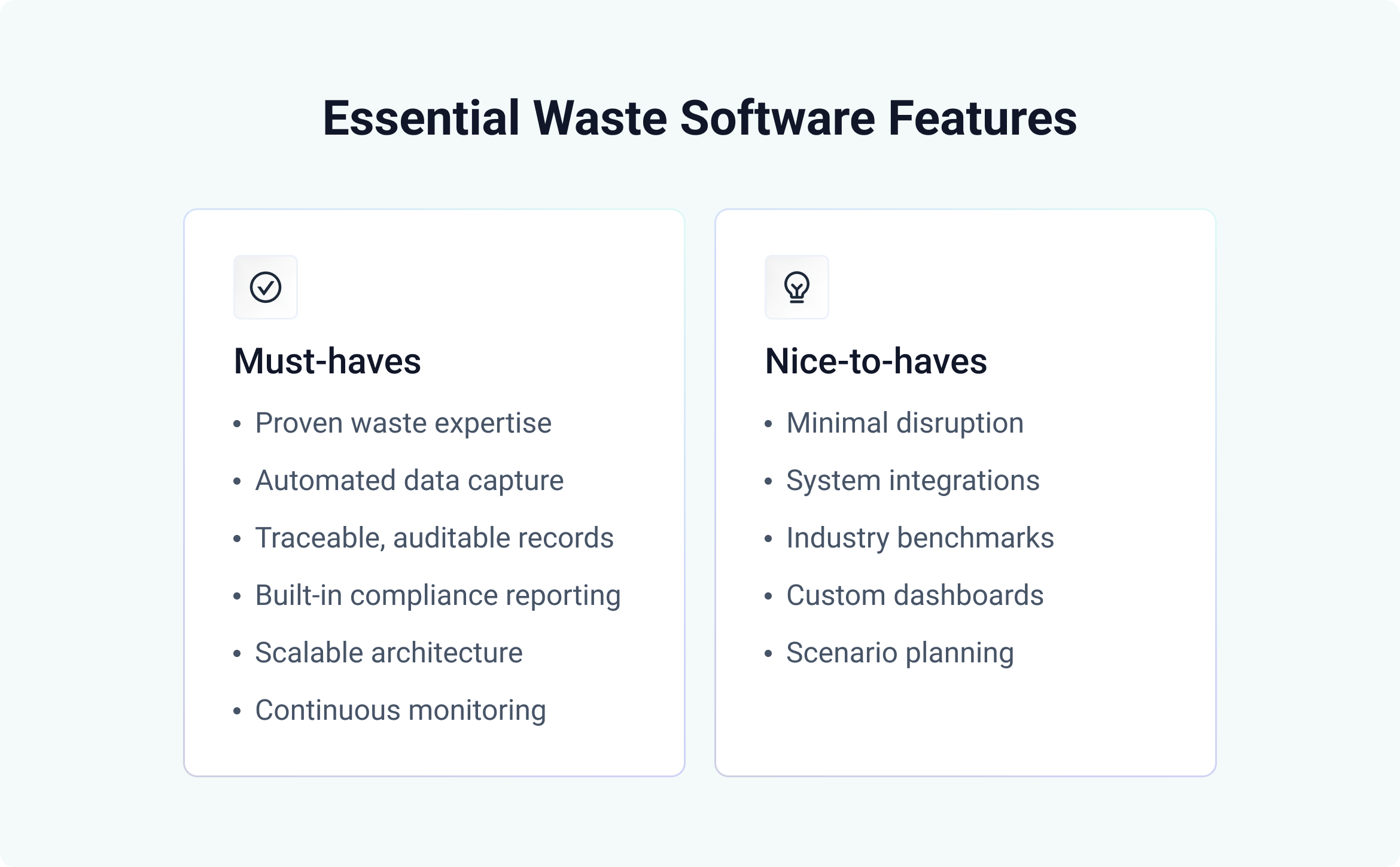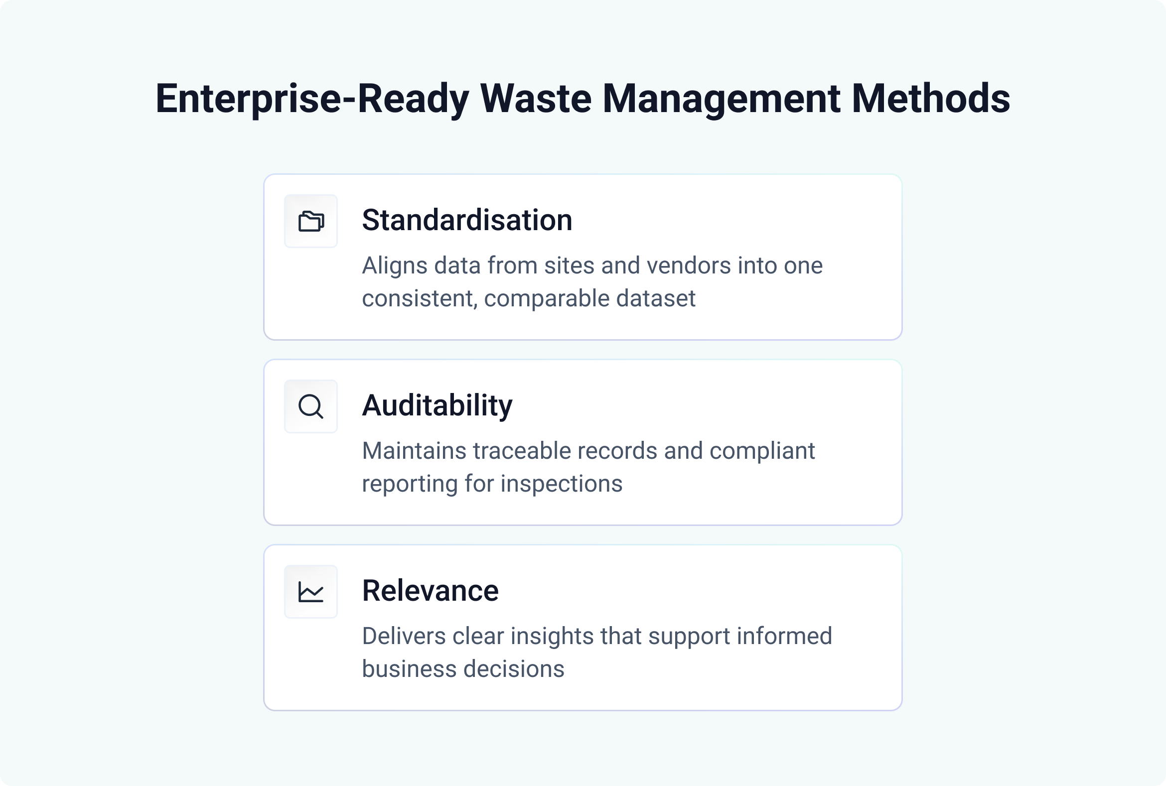 When assessing vendors, prioritise systems that not only collect data but also have the expertise to interpret it. Waste is a highly specialised field that often requires tailored data extraction and classification to ensure accuracy, consistency and compliance.