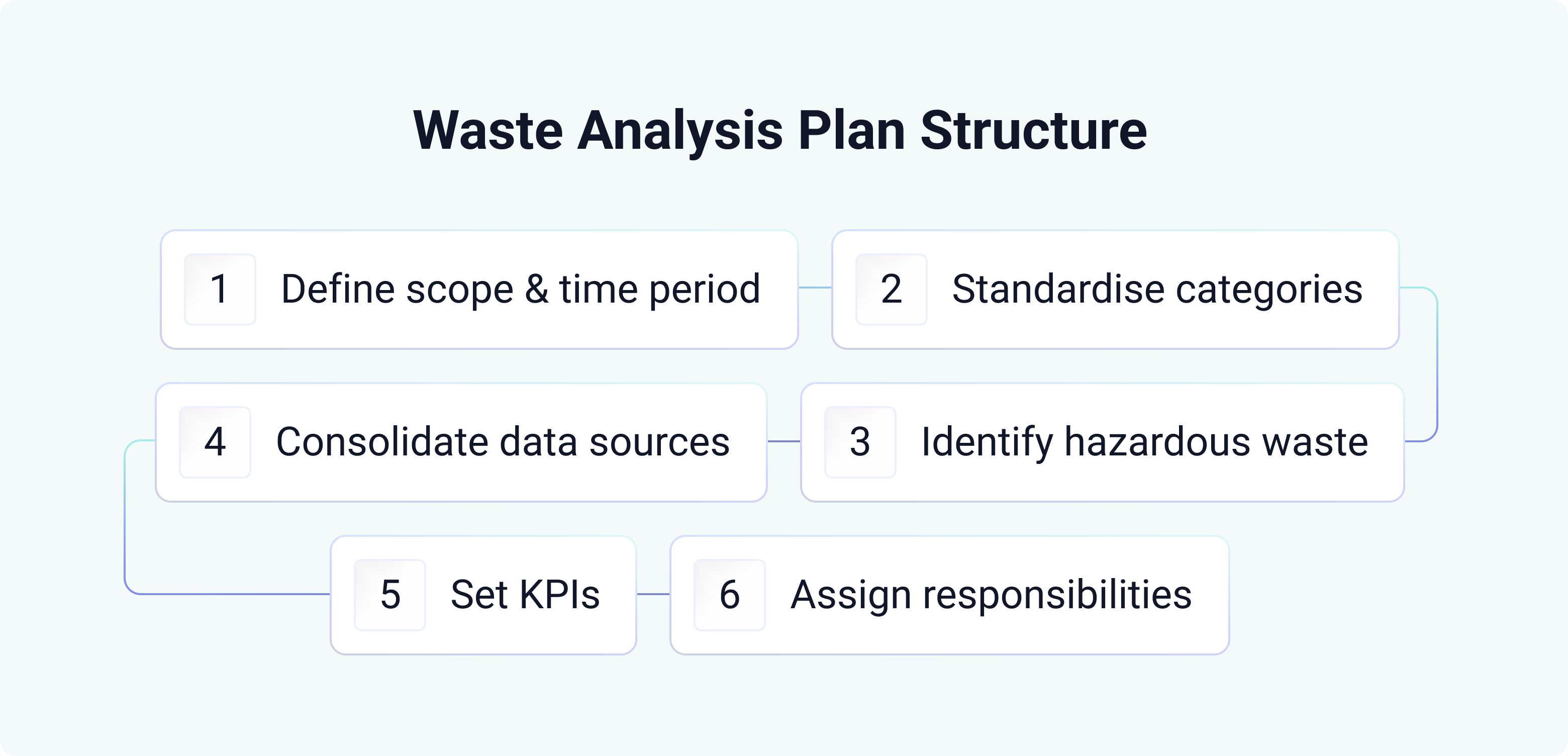 To make waste analysis repeatable, enterprises need a waste analysis plan. This defines how waste analysis is performed consistently across the organisation, rather than relying on ad hoc reviews.